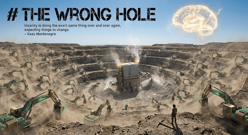 When the real breakthrough comes, it won’t look like a better transformer. It won’t be “just add more GPUs.” It might not even look like “AI” as we’ve defined it. The diggers will dismiss it. “That’s not real AI. Real AI scales with compute.”