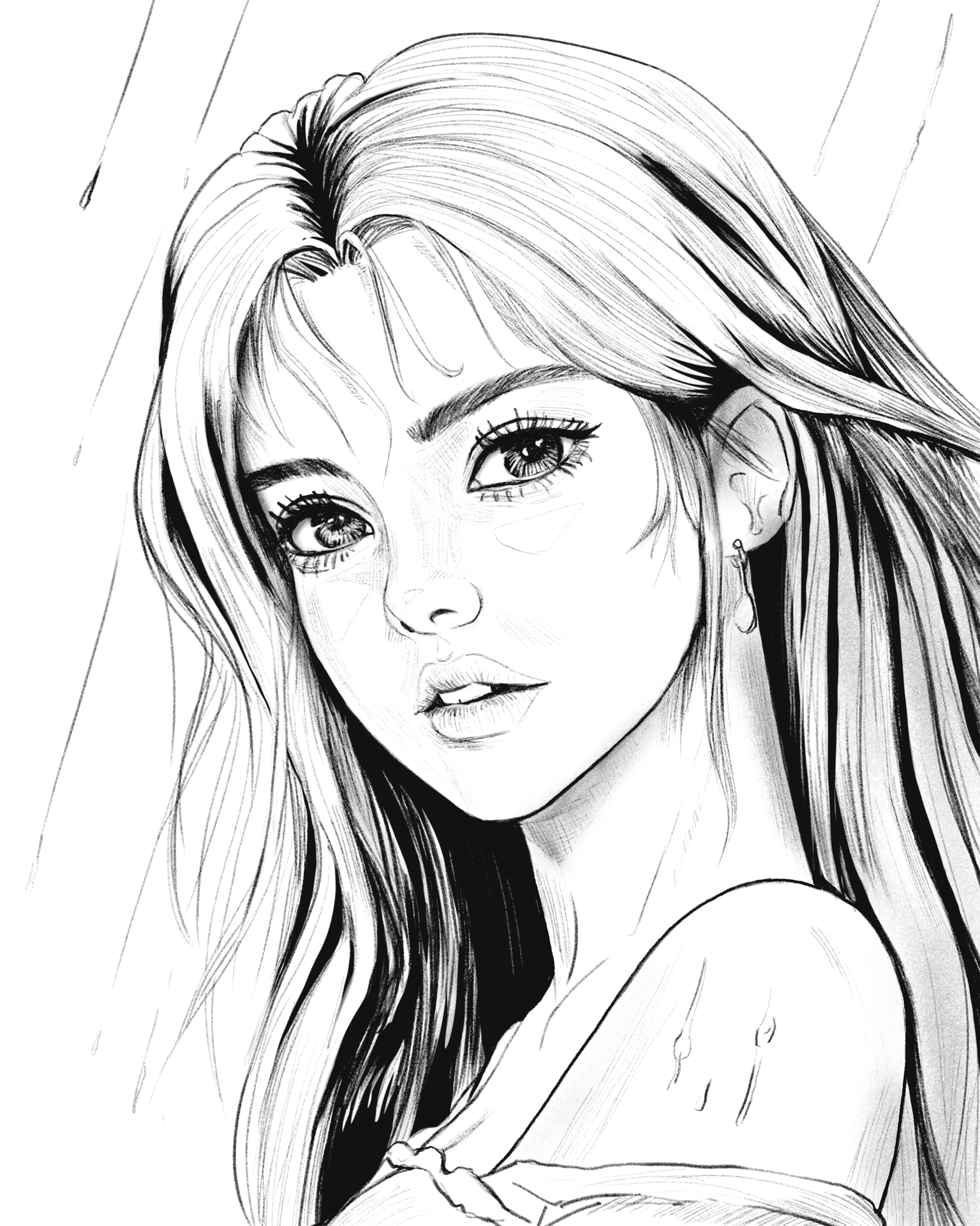 Dad's drawing of me, again in the rain later